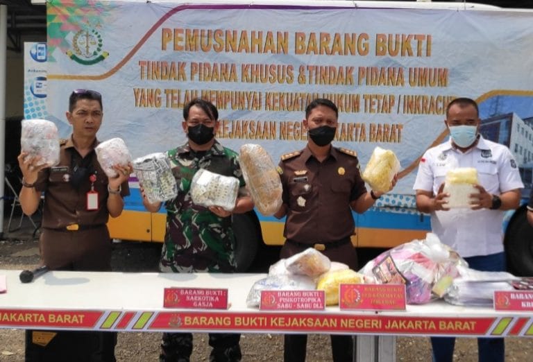 Kajari Jakbar Dr Iwan Ginting melalui Kasi Barang Bukti dan Barang Rampasan (PB3R), Fariando Rusmand SH.,MH., kepada wartawan, mengatakan,” pemusnahan barang bukti dari narkotika, psykotropika, kosmetik palsu (tanpa izin edar), uang palsu, dan senjata airsoftguns serta senjata api rakitan dan senjata tajam tersebut dilakukan atas perkara yang sudah mempunyai kekuatan hukum tetap atau Inkracht.