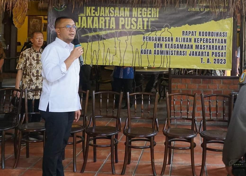 IPNews. Jakarta. Kepala Kejaksaan Negeri Jakarta Pusat (Kajari Jakpus), Hari Wibowo melalui Kasi Intel Bani Immanuel Ginting melaksanakan Kegiatan, Rapat Koordinasi Pengawasan Aliran Kepercayaan Masyarakat (PAKEM) yang berlangsung di RM Ciganea Jakpus, Kamis (7/9/2023)