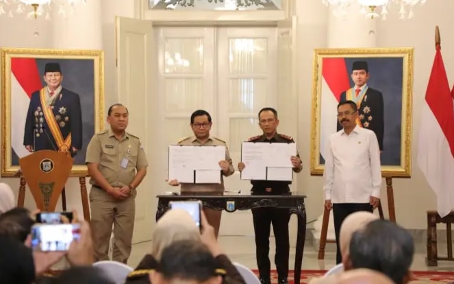 Dalam Penandatanganan PKS yang berlangsung di Kantor Gubernur DK Jakarta, disaksikan Jaksa Agung Muda Kejaksaan Agung) (Jampidum Kejagung) Prof Dr Asep Nana Mulyana, SH, MHun.