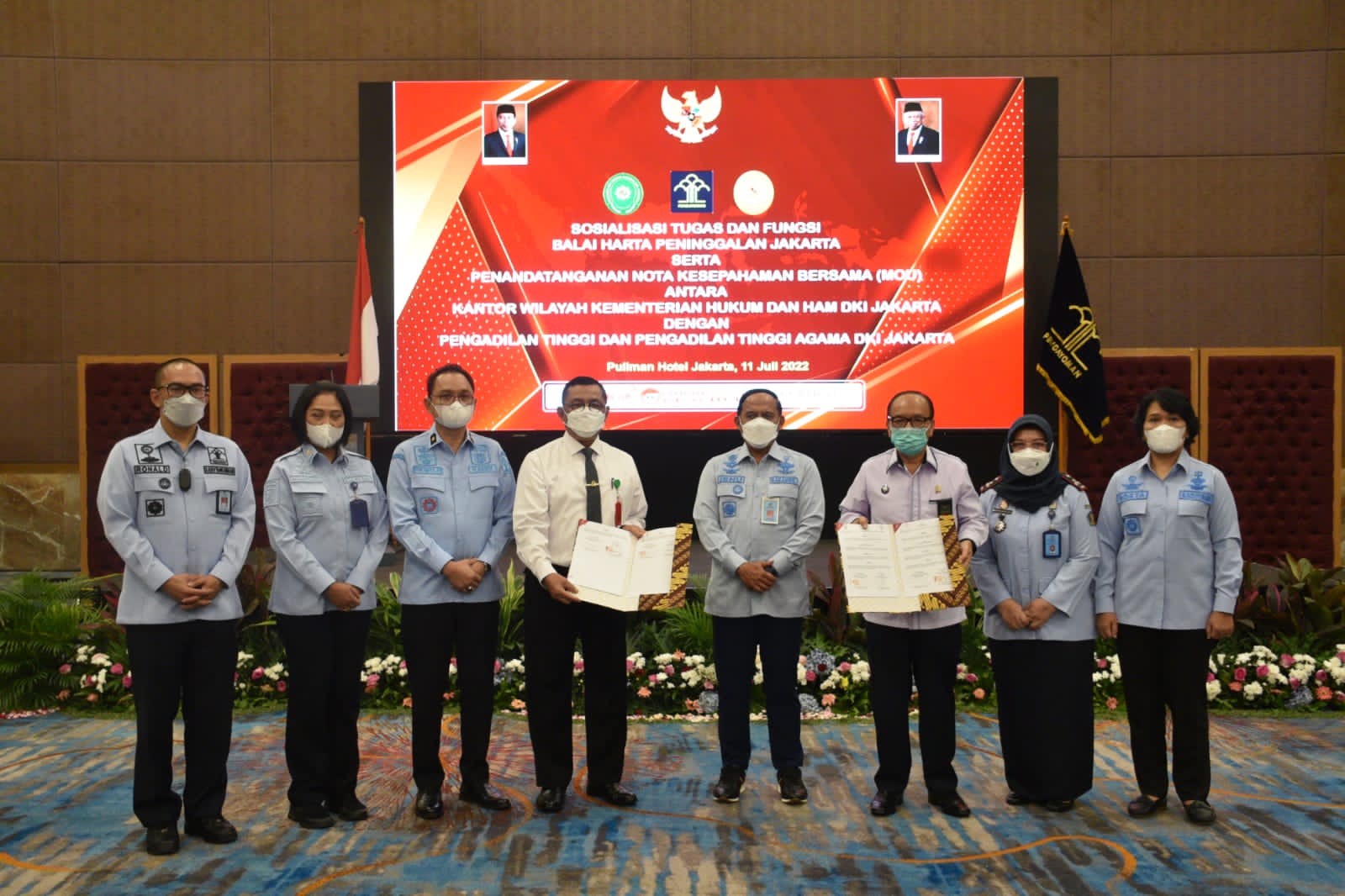 Maka untuk peningkatan layanan jasa hukum, Balai Harta Peninggalan Jakarta melaksanakan kegiatan Sosialisasi Tugas dan Fungsi serta Penandatanganan Nota Kesepahaman Bersama dengan Pengadilan Tinggi dan Pengadilan Tinggi Agama DKI Jakarta bertempat di Pullman Hotel Central Park Jakarta.