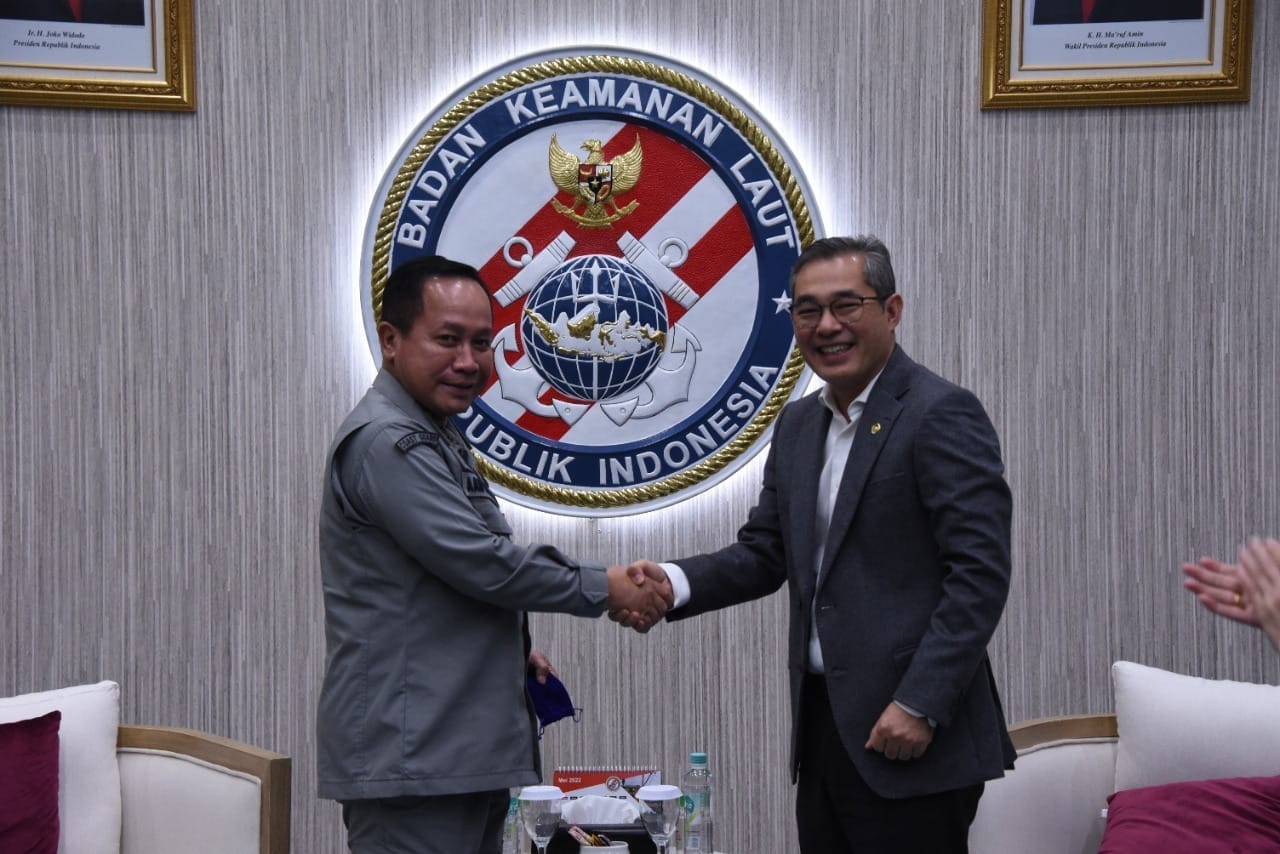 IPNews. Jakarta. Kepala Bakamla RI Laksdya TNI Dr. Aan Kurnia menerima kunjungan Anggota VII BPK RI Dr. Hendra Susanto,ST. M.Eng. MH. CFrA. CSFA. dalam rangka acara exit briefing pemeriksaan laporan keuangan Bakamla RI di Mabes Bakamla RI, Jakarta Pusat, kemarin.