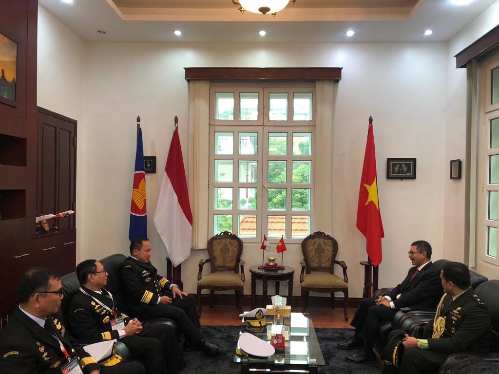 Courtesy call Kepala Bakamla RI Laksdya TNI Dr. Aan Kurnia dilaksanakan dalam kesempatan kegiatan Kepala Bakamla RI menghadiri undangan Vietnam Defence Expo 2022 di Hanoi dan pertemuan perdana Vietnam Coast Guard and Friends.