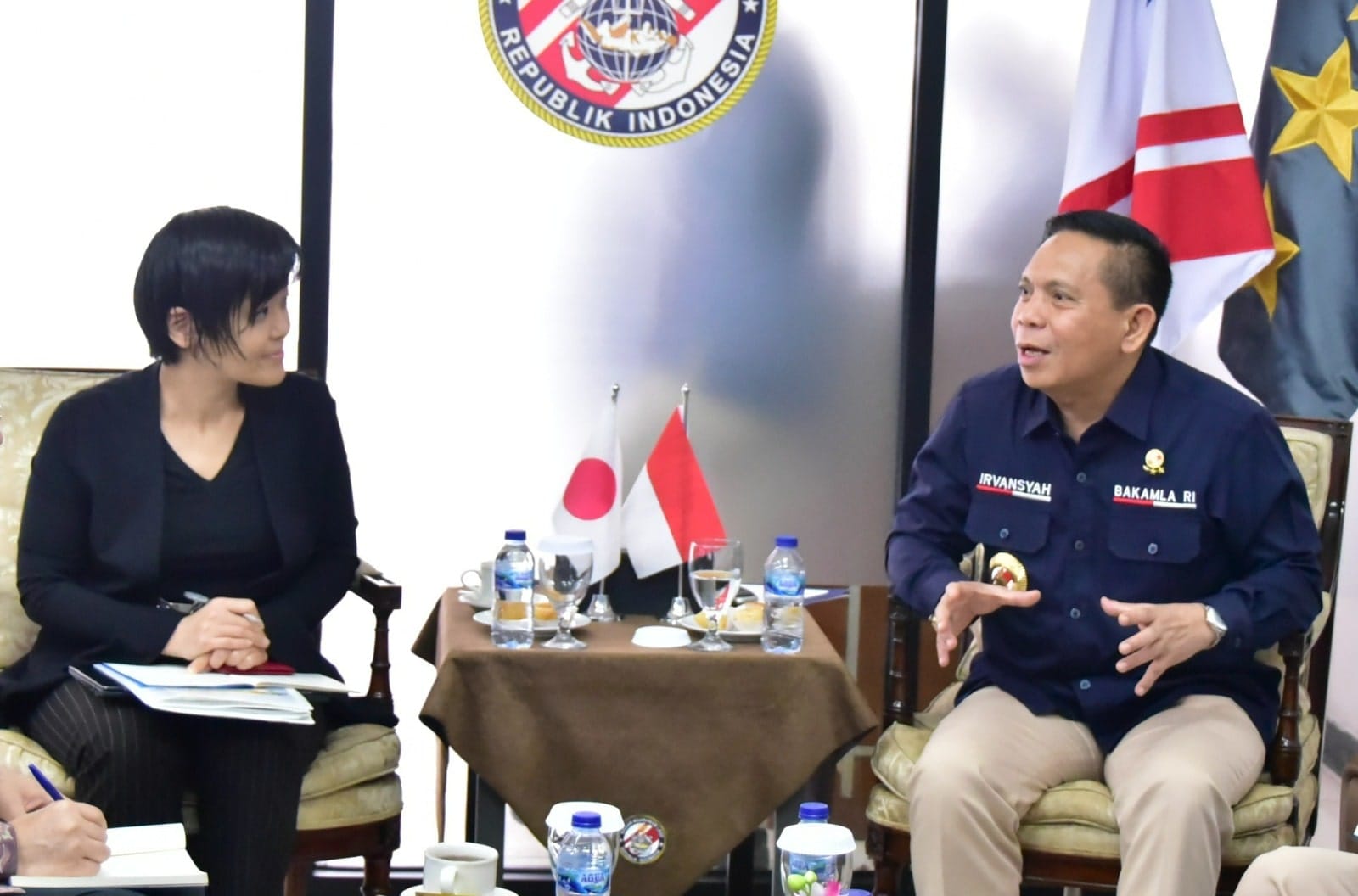 IPNews. Jakarta. Kepala Bakamla RI Laksdya TNI Dr. Irvansyah, S.H. M.Tr. Opsla., menerima kunjungan kerja atau courtesy call dari Director Infrastructure Management Department Japan International Cooperation Agency (JICA) Shimada Aya, beserta jajaran, di Kantor Bakamla RI Rawamangun, Jakarta Timur, (21/6/2025).