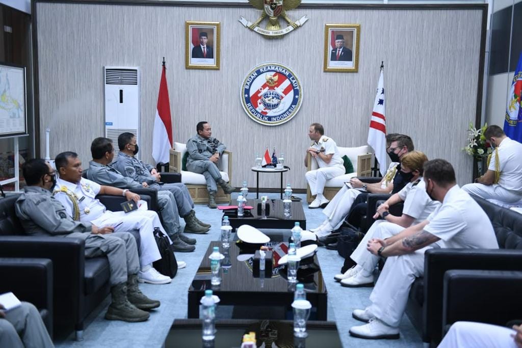 IPNews. Jakarta. Kepala Badan Keamanan Laut (Bakamla) RI Laksdya TNI Dr. Aan Kurnia menerima kunjungan kehormatan Australia Chief of Navy (Kasal Australia) Vice Admiral Michael Noonan di Markas Besar Bakamla RI, Jalan Proklamasi No. 56, Menteng, Jakarta Pusat, Selasa (11/1/2022).