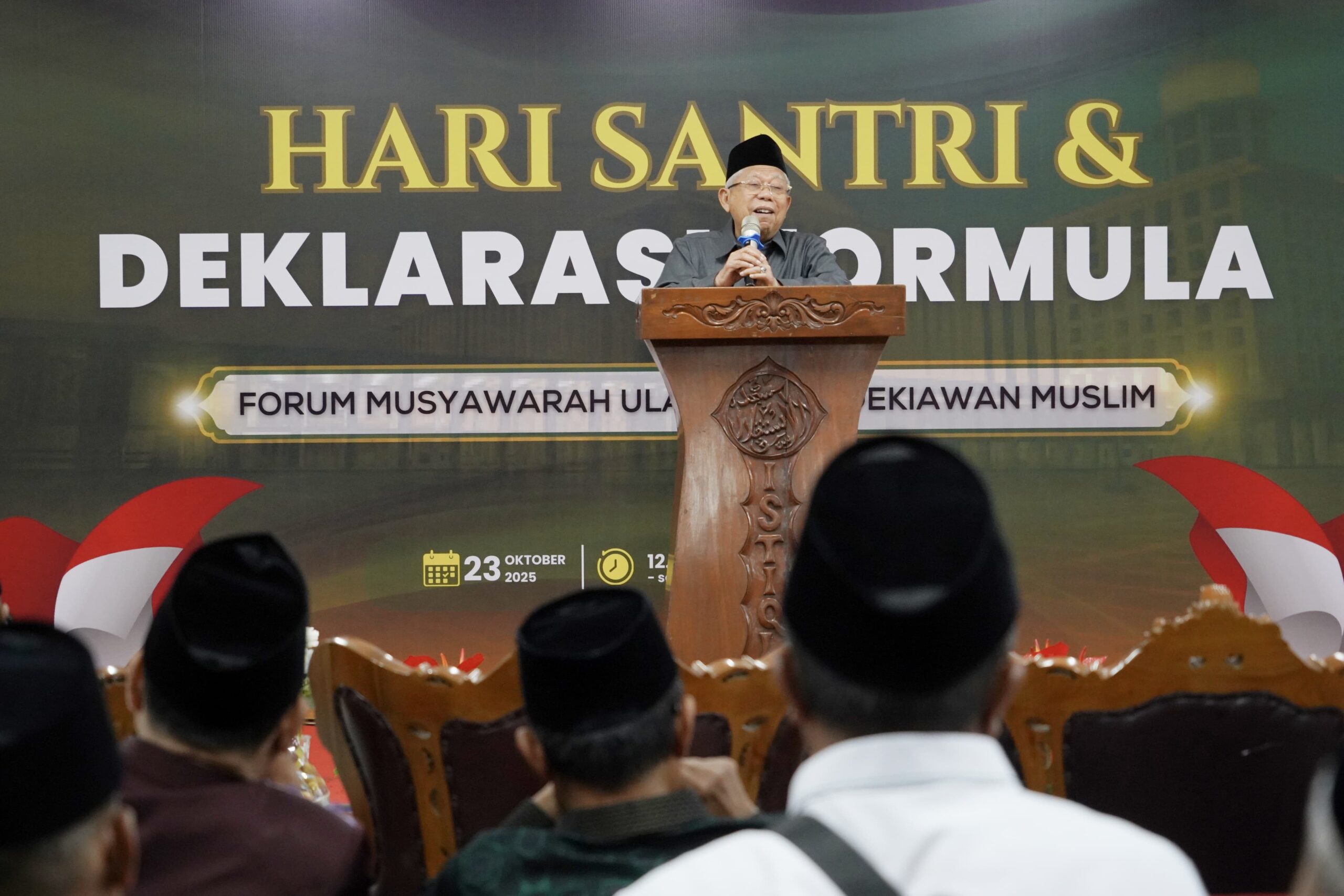 IPNews. Jakarta. Menyambut Hari Santri Nasional 2025 Wakil Presiden Republik Indonesia ke-13, Prof. Dr. KH. Ma’ruf Amin dan Menteri Agama, Prof. Dr. KH. Nasaruddin Umar, MA, meresmikan berdirinya Forum Musyawarah Ulama & Santri (FORMULA SANTRI), Kamis (23/10/2025) di Aula PKU-MI, Masjid Istiqlal, Jakarta Pusat.