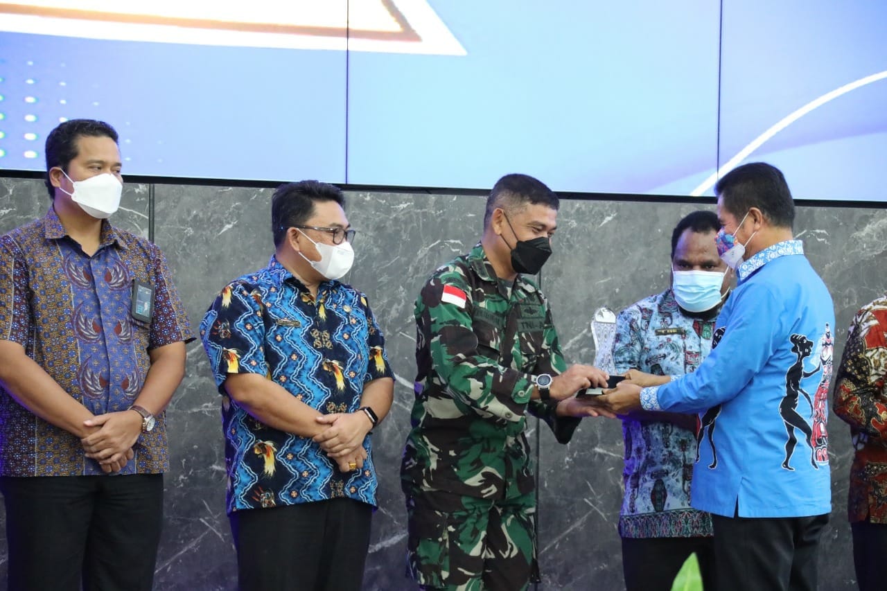 IPNews. Jayapura. Kodam XVII/ Cenderawasih mendapat Penganugerahan keterbukaan Informasi Badan Publik se-Provinsi Papua Tahun 2021,dari Komisi Informasi Provinsi Papua, di Gedung Negara Provinsi Papua, Jayapura, Kamis (18/11/2021).