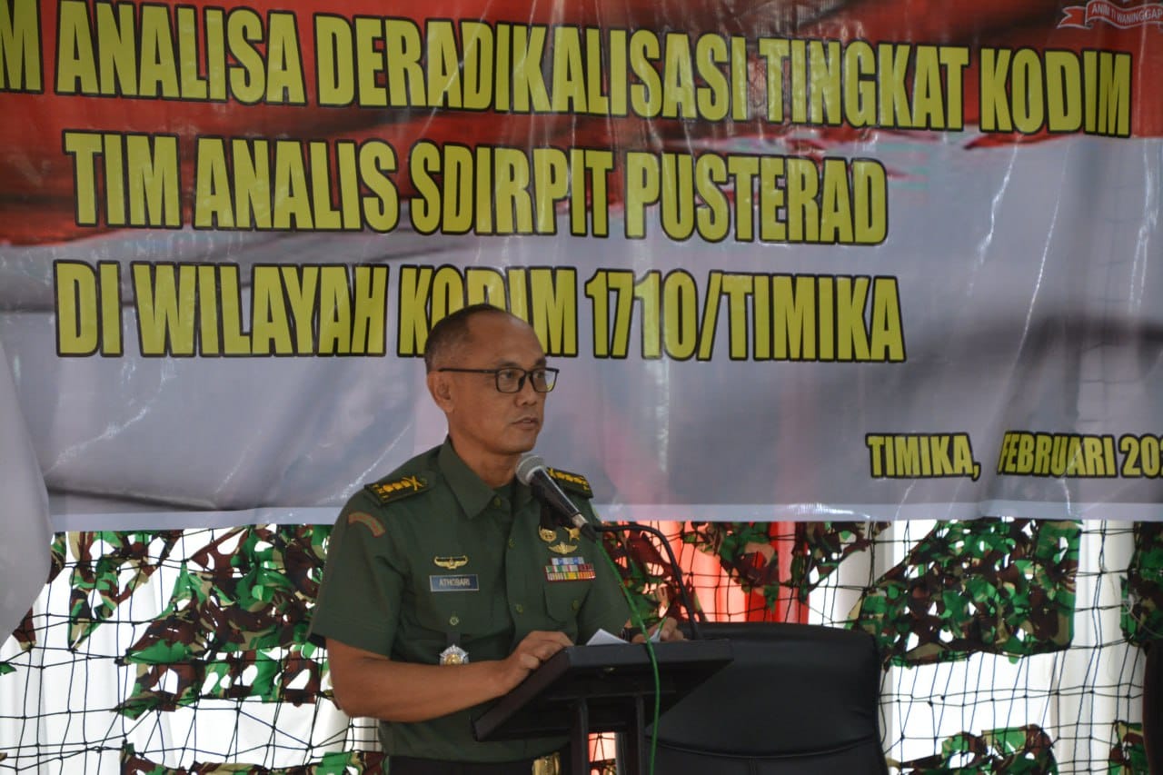 Dalam kesempatan tersebut, Dandim 1710/Mimika Letkol Inf Dedy Dwi Cahyadi dalam sambutannya mengatakan tujuan kegiatan Analisa Deradikalisasi ini merupakan sebuah program yang bertujuan untuk menetralkan pemikiran-pemikiran bagi mereka yang sudah terpapar dengan radikalisme.