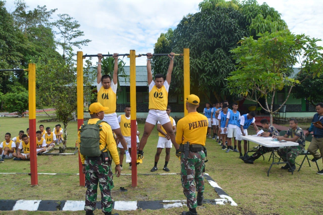 Sebanyak 59 orang Calon Siswa (Casis) Tamtama PK dan Lintas Agama TNI AD Gelombang II TA 2022 tingkat Sub Pandasus Mimika melaksanakan tes kesamaptaan jasmani.