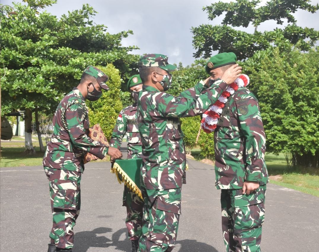 Indoposnews.Merauke. Komandan Korem 174/ATW (Merauke) Kodam XVII/Cenderawasih Brigjen TNI Bangun Nawoko menyambut kedatangan Kepala Staf Korem 174/ATW yang baru Kolonel Inf Agustinus Dedi Prasetyo di Makorem 174/ATW, Distrik Tanah Miring, Kab. Merauke, Provinsi Papua, Minggu (21/6/2020).
