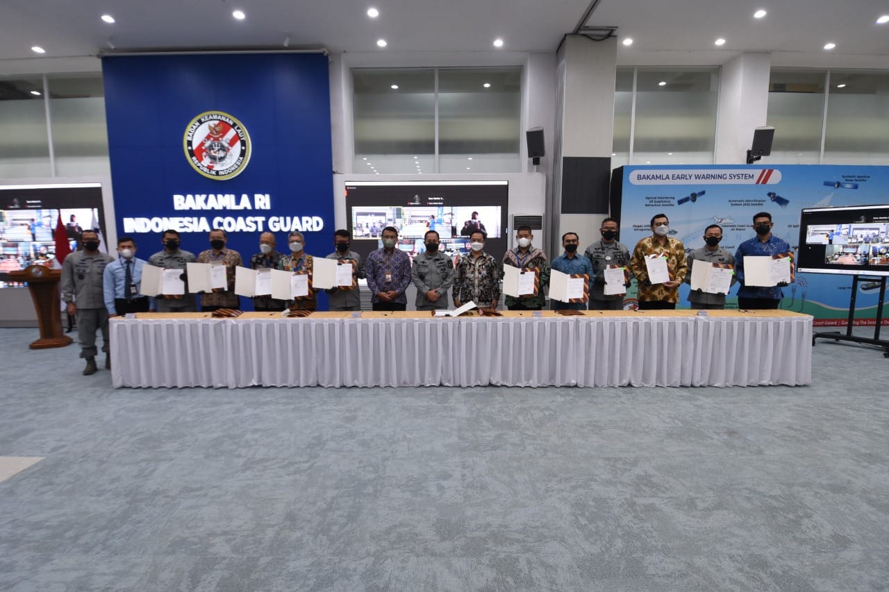 “Terhitung 12 kontrak telah resmi ditandatangani hari ini antara Pejabat Pembuat Komitmen (PPK) Bakamla RI dengan mitra penyedia barang dan jasa. Total nilai kontrak sebesar 107 milyar rupiah, atau setara dengan 30,5% dari total anggaran belanja modal dan belanja barang Bakamla RI di Tahun Anggaran 2022.