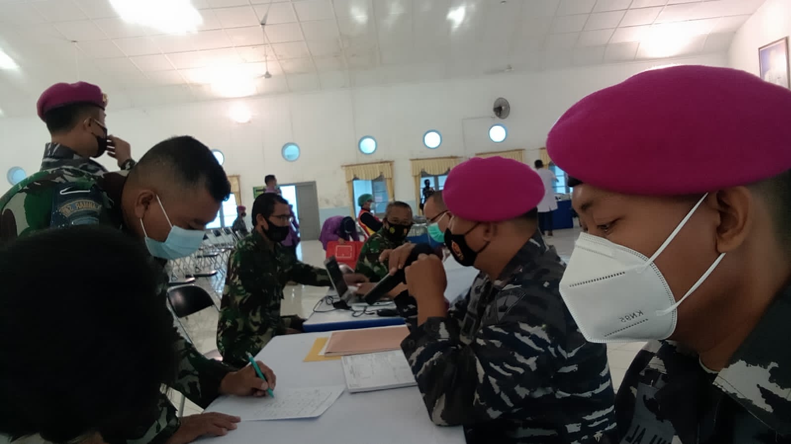 IPNews. Surabaya. Mewujudkan Indonesia sehat bebas Covid-19, Pangkalan Korps Marinir (Lanmar) Surabaya atas perintah langsung dari Kepala Staf Angkatan Laut (Kasal) Laksamana TNI Yudo Margono, S.E., M.M., melalui Komandan Korps Marinir (Dankormar) Mayor Jenderal TNI (Mar) Suhartono melakukan terobosan dengan menggelar kegiatan Donor Plasma Konvalescent dan Donor Darah secara serentak di Balai Prajurit Mako Lanmar Surabaya, Jalan Opak No.9, Surabaya, Kamis (12/08/2021).
