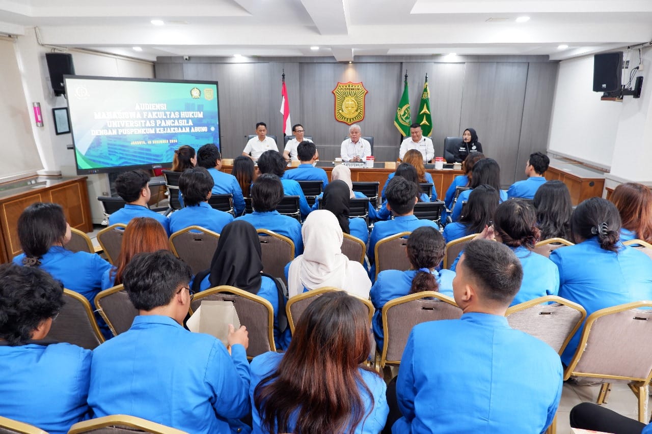 IPNews. Jakarta. Pusat Penerangan Hukum (Puspenkum) Kejaksaan Agung yang dikomandoi Harli Siregar menerima kunjungan studi mahasiswa yang tergabung dalam Senat Mahasiswa Fakultas Hukum Universitas Pancasila (FHUP) Kamis,(19/12/2024),
