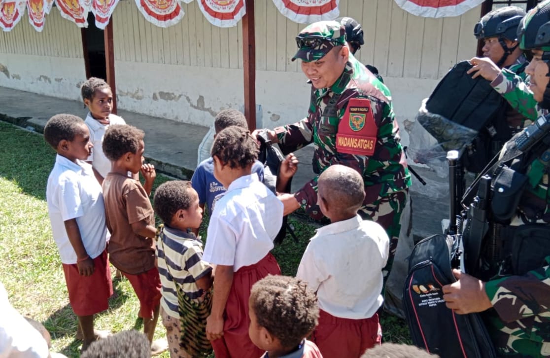 IPNews. Yahukimo. Satgas Pamtas Yonif Raider 142/KJ peduli terhadap generasi muda penerus bangsa Indonesia yang ada di sekolah daerah pedalaman Papua, yaitu dengan melakukan kunjungan ke Sekolah Dasar YPK Polimo, Distrik Kurima, Kabupaten Yahukimo, Pegunungan Tengah Papua, Senin (22/08/22).