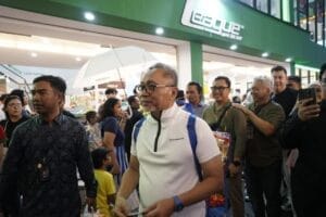 Para pengunjung yang datang pun merasa antusias lantaran mendapat kejutan dari Zulhas. Saking padatnya suasana di booth, Marketing Director JIEXPO Ralph Scheunemann turut membantu memberikan paket KuSuka kepada pengunjung yang sedang mengantre.