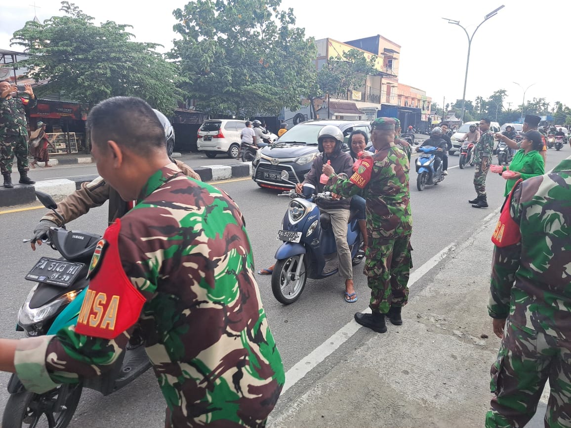 “Aksi bagi-bagi takjil gratis di hari ke-16 ini merupakan salah satu program Kodim 1710/Mimika di bulan suci Ramadhan sekaligus sebagai sarana silaturahmi TNI khusunya anggota Kodim 1710/Mimika dengan masyarakat setempat.