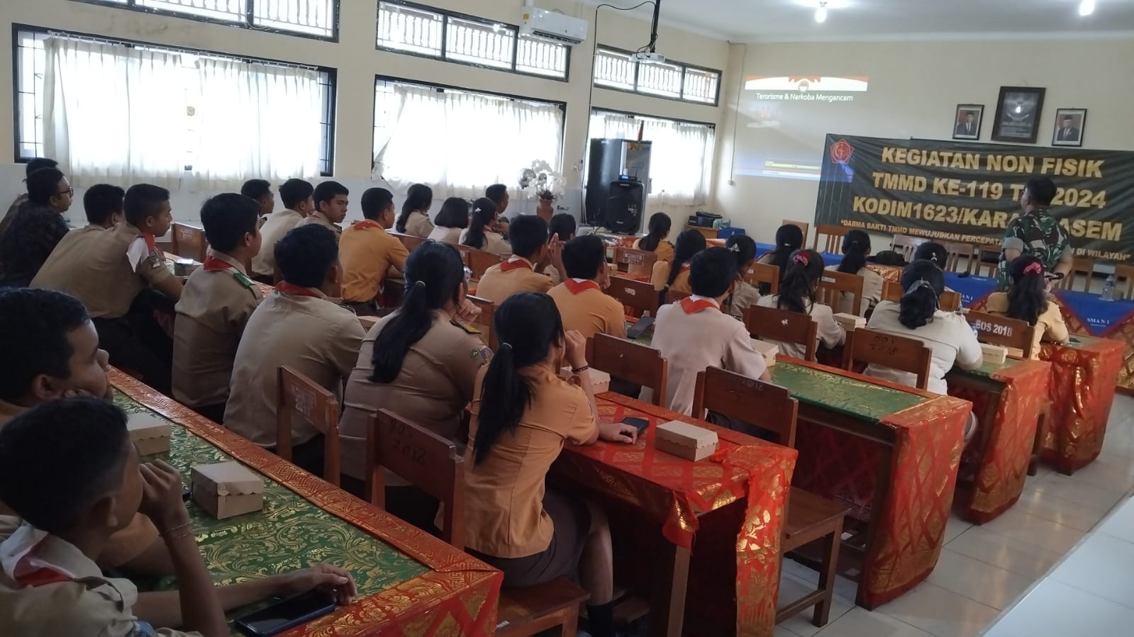 IPNews. Karangasem. Menyadari pentingnya Wawasan Kebangsaan (Wasbang) bagi anak sekolah, anggota Satgas TMMD ke-119 Kodim 1623/Karangasem, memberikan penyuluhan Wasbang kepada 40 siswa-siswi SMAN 1 Manggis, Kabupaten Karangasem, Bali, Selasa (27/02/2024).