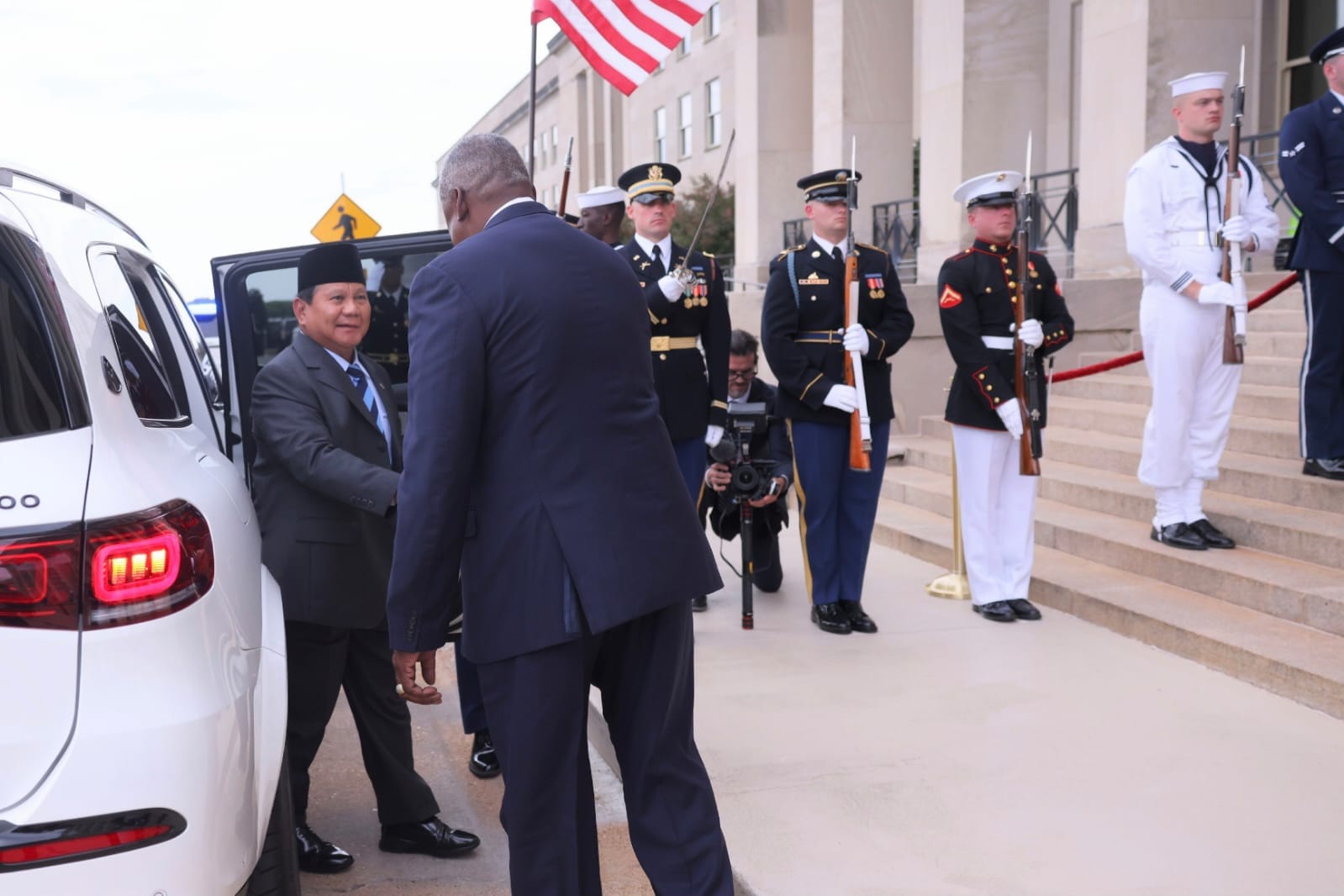IPNews. Jakarta. Menteri Pertahanan Prabowo Subianto bertemu dengan Menteri Pertahanan Amerika Serikat Lloyd James Austin III untuk bersama-sama menegaskan kembali kekuatan pilar pertahanan Kemitraan Strategis, di Gedung Pentagon, Amerika Serikat, Kamis (24/8).