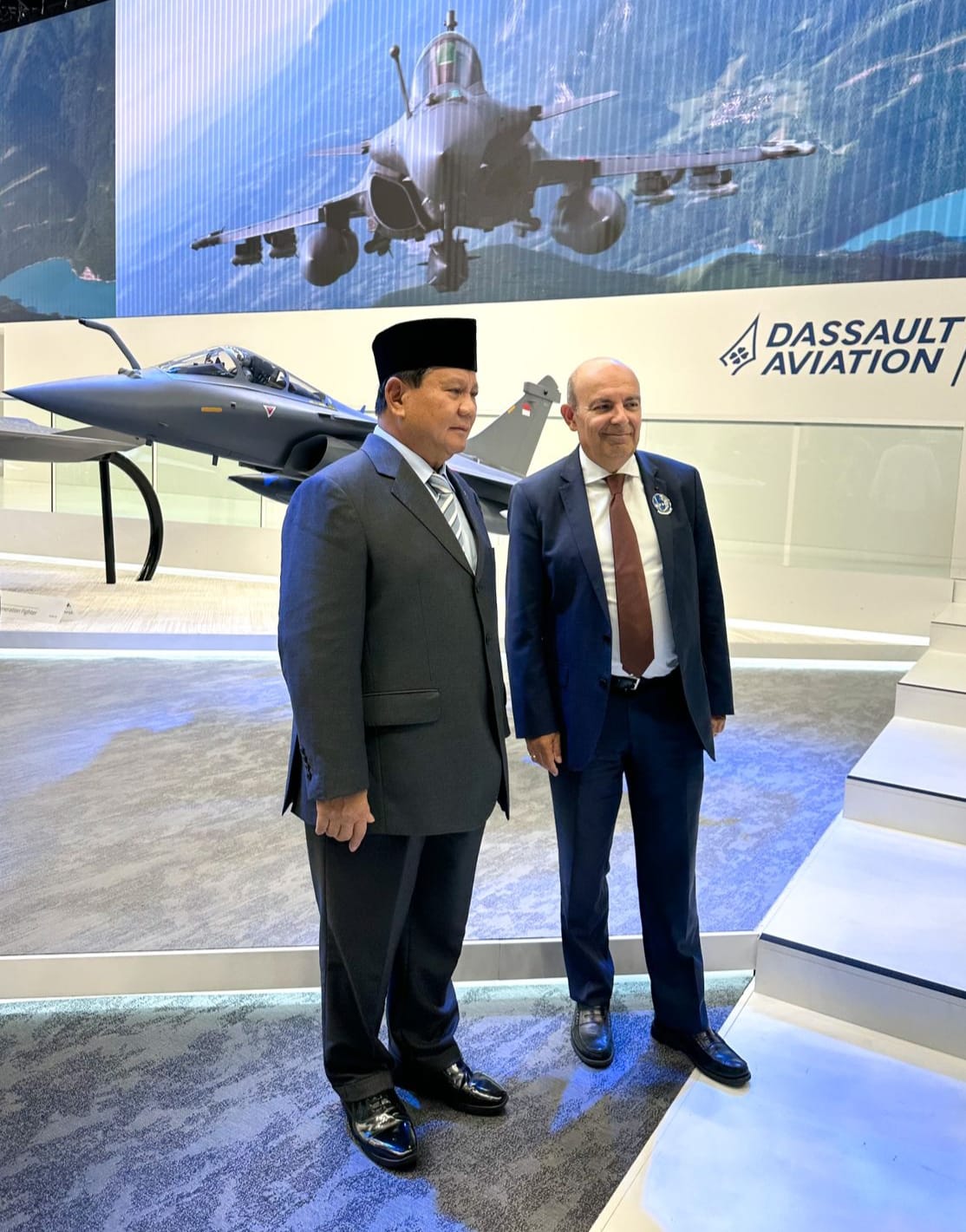 Menhan Prabowo mengunjungi berbagai paviliun pameran dan sempat berkeliling bersama Eric Trapier, CEO Dassault Aviation, produsen pesawat tempur Rafale yang akan memperkuat TNI AU. Dalam kesempatan itu miniatur Rafale untuk Indonesia turut dipamerkan.