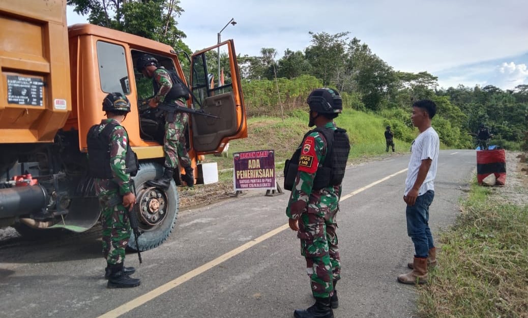 IPNews. Keerom. Personel Satgas Pamtas RI-PNG Yonif 126/KC Pos KM 140 menggelar kegiatan sweeping dalam rangka menjaga stabilitas keamanan, di Jalan Utama Perbatasan di Jalan Monggoefi, Distrik Yaffi, Kabupaten Keerom, Papua.