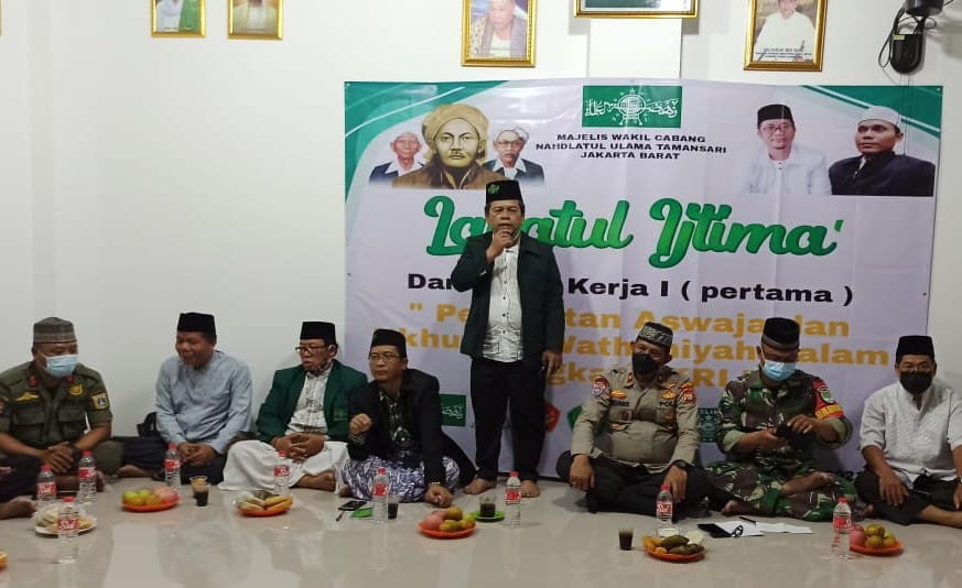 Kegiatan Laitul Ijtima kali ini,” Penguatan Aswaja dan Ukhwa Wathoniyah dalam bingkai NKRI.” yang dihadiri Ketua PCNU Jakbar, H. Agus Salim SE dan Wakilnya Drs. H. Arief Haryono S.Ag., Wakil Rois Syuriah KH. Hanan Manan dan Wakil Katib Syuriah KH. Amron Zam Zami S.Pdi, serta perwakilan dari Kepolisian, Danramil, Camat. dan Lurah Pinangsia, serta para pengurus MWC Tamansari Jakbar.