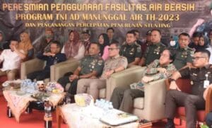 Acara peresmian penggunaan fasilitas air bersih dan pencanangan percepatan penurunan stunting yang dilaksanakan secara terpusat di Desa Majasari, Kecamatan Sobang, Kabupaten Lebak, Banten yang diikuti dan disaksikan langsung secara virtual dan serentak oleh seluruh Dansatkowil TNI AD di lokasi Sumur Bor masing-masing wilayah.