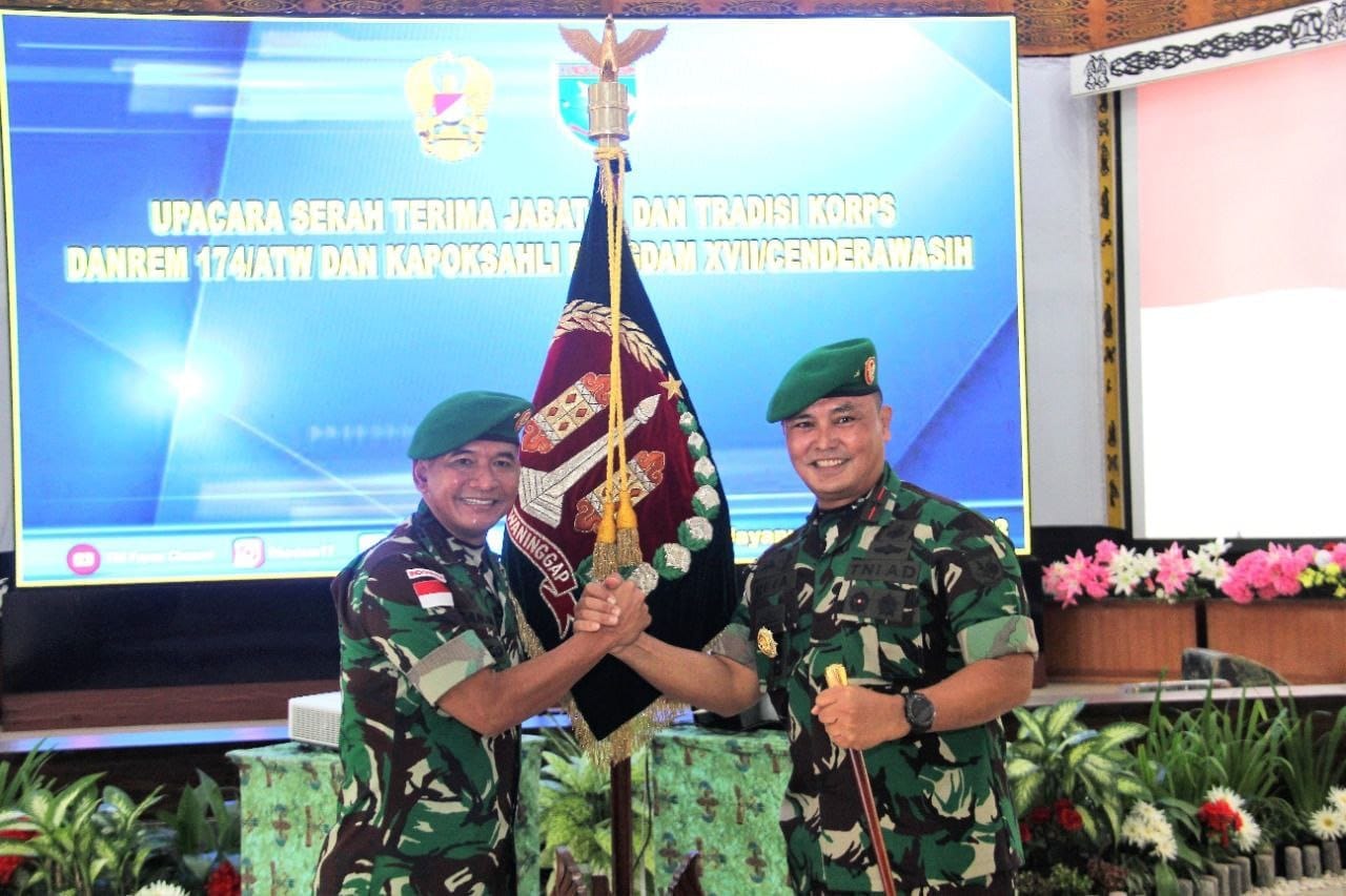 Selain serah terima pejabat Danrem 174/ATW juga dilaksanakan serah terima Ketua Persit KCK Koorcab Rem 174 PD XVII/Cenderawasih serta serah terima jabatan Perwira Tinggi (Pati) di Kodam XVII/Cenderawasih, jabatan Kapoksahli Pangdam XVII/Cenderawasih dari Brigjen TNI Heru Setio Paripurnawan, M.D.A kepada Kolonel Inf Mudya Widiyanto, S.A.P.