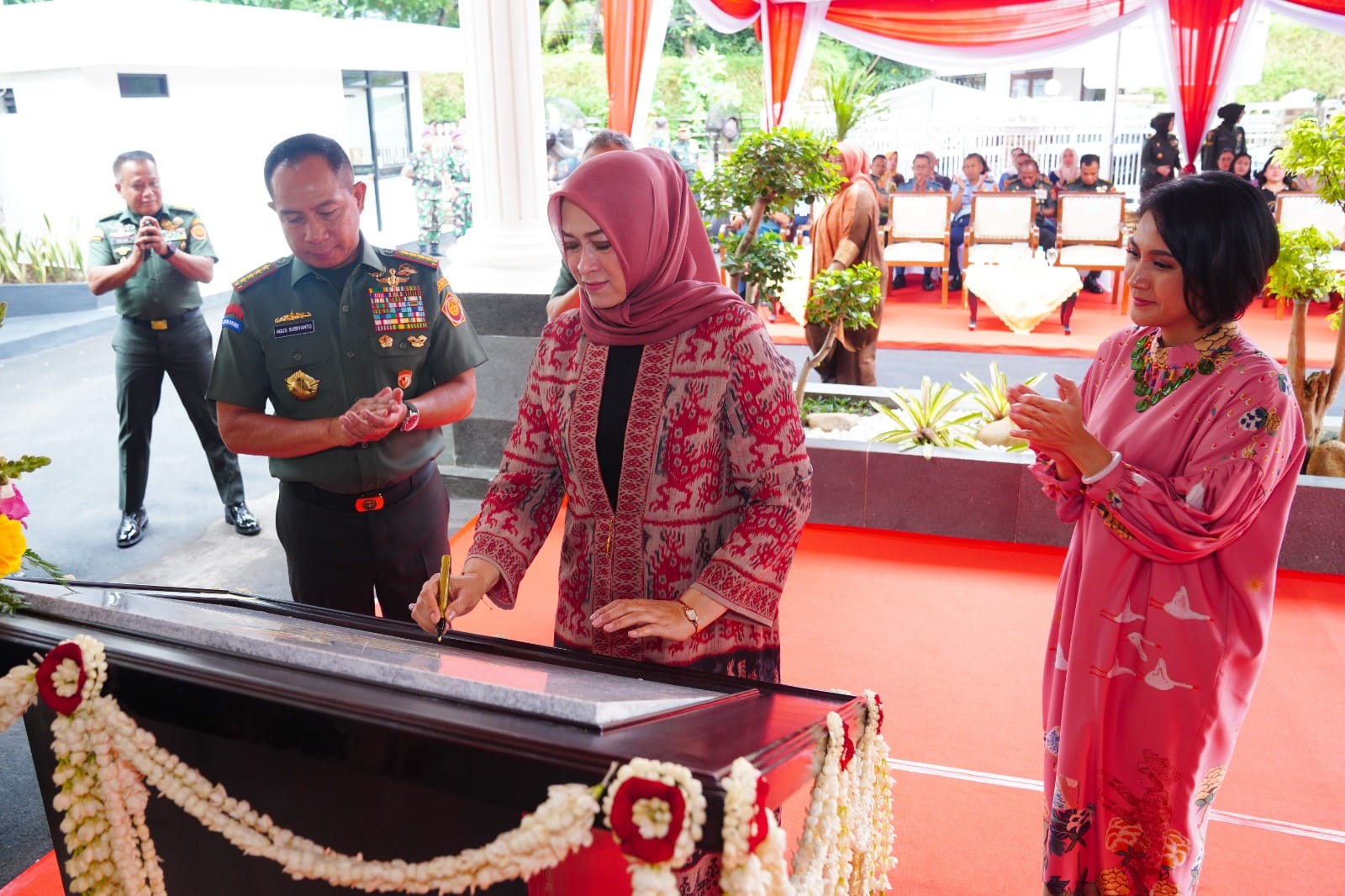 Turut hadir pada acara peresmian tersebut diantaranya Ketua Harian Dharma Pertiwi, Ketua Harian IKKT PWA, Para Pengurus Dharma Pertiwi Pusat, PJU Mabes TNI, serta tamu undangan lainnya. (Tim)