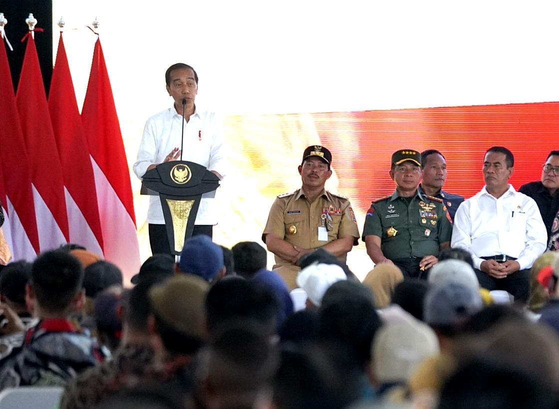 IPNews. Jateng. Panglima TNI Jenderal TNI Agus Subiyanto mendampingi Presiden RI Ir. H. Joko Widodo (Jokowi) saat menemui puluhan ribu petani se-Jawa Tengah, bertemakan “Pembinaan Petani Se-Provinsi Jawa Tengah Mendukung Peningkatan Produksi Padi dan Jagung Nasional”, bertempat di GOR Satria Purwokerto, Kabupaten Banyumas, Provinsi Jawa Tengah, Selasa (2/1/2024).