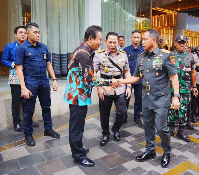 IPNews. Jakarta. Panglima TNI Jenderal TNI Agus Subiyanto mendampingi Presiden RI Ir. H. Joko Widodo dalam acara Pertemuan Tahunan Industri Jasa Keuangan 2024 dengan tema “Sektor Jasa Keuangan Yang Kuat dan Stabil untuk mendukung Pertumbuhan Ekonomi Berkelanjutan”, bertempat di Astor Ballroom, Hotel St. Regis, Jakarta Selatan, Selasa (20/2/2024).