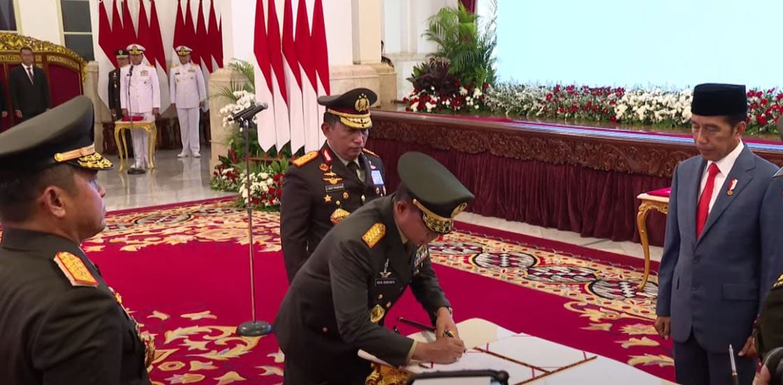Prosesi pelantikan dihadiri pula oleh Menteri Pertahanan Prabowo Subianto, Kapolri Jenderal Polisi Drs. Listyo Sigit Prabowo, M.Si., Kepala Staf TNI Angkatan Laut Laksamana TNI Muhammad Ali dan Kepala Staf TNI Angkatan Udara Marsekal TNI Fadjar Prasetyo, S.E., M.P.P. (Tim)