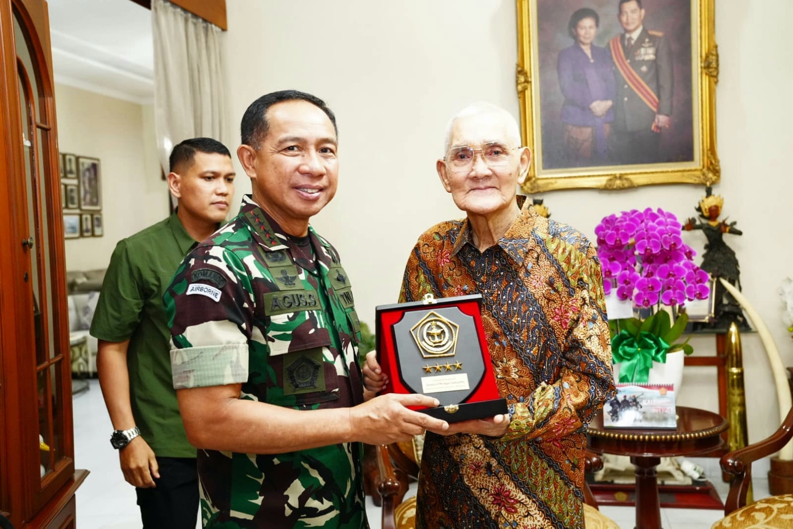Mengakhiri silaturahmi, Panglima TNI memberikan cinderamata dan sebuah buku kepada Pak Try Sutrisno sebagai kenang-kenangan.