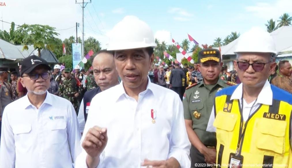 IPNews. Jakarta. Panglima TNI Jenderal TNI Agus Subiyanto mendampingi Presiden Jokowi saat menerima gelar adat Marambe Ambaralla Palunglaa Parodisa oleh Dewan Adat Talaud dan mengunjungi Pasar Melonguane serta pemberian BLT di Kabupaten Talaud, Sulawesi Utara, Kamis (28/12/2023).