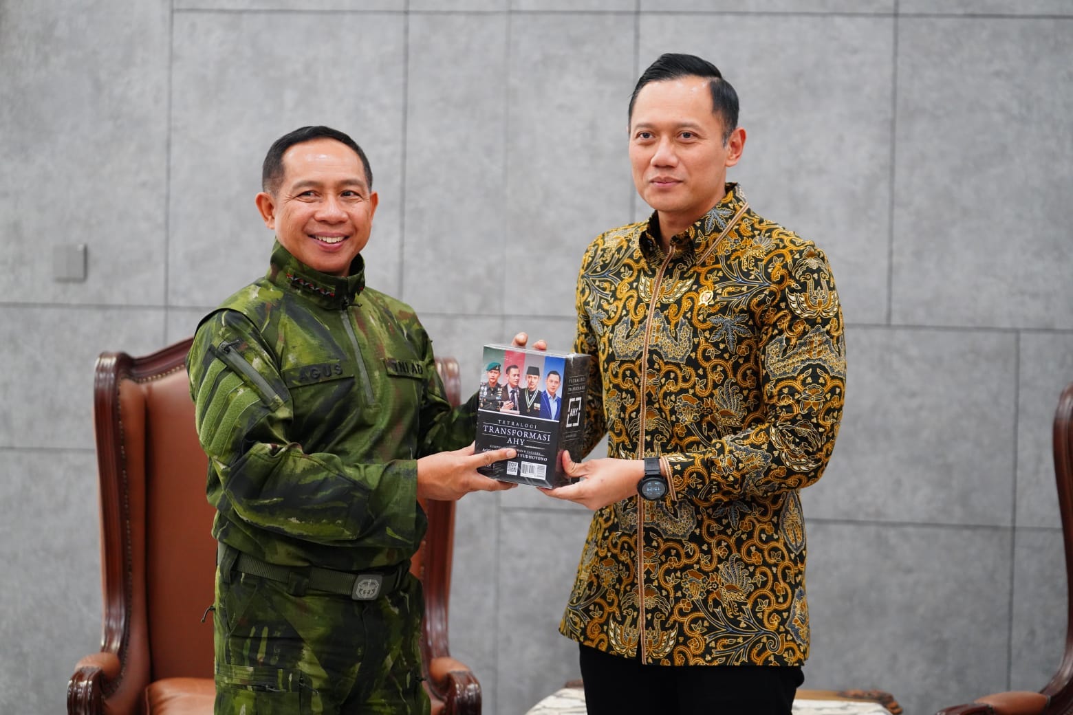 IPNews. Jakarta. Panglima TNI, Jenderal TNI Agus Subiyanto menerima kunjungan dari Menteri Agraria dan Tata Ruang (ATR) Badan Pertanahan Nasional (BPN), Agus Harimurti Yudhoyono di Subden Mabes TNI, Jalan Merdeka Barat, Jakarta Pusat, pada Selasa 19 Maret 2024.