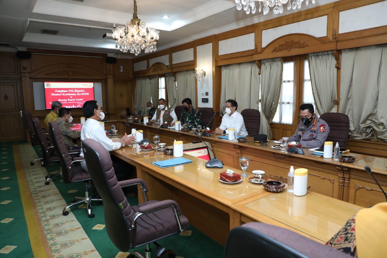 IPNews.Jakarta. Kunjungan kerja Panglima TNI Marsekal TNI Hadi Tjahjanto, S.I.P. di Daerah Istimewa Yogyakarta (DIY),Sabtu (17/7/2021),dalam rangka pembahasan perkembangan situasi penanganan Covid-19.