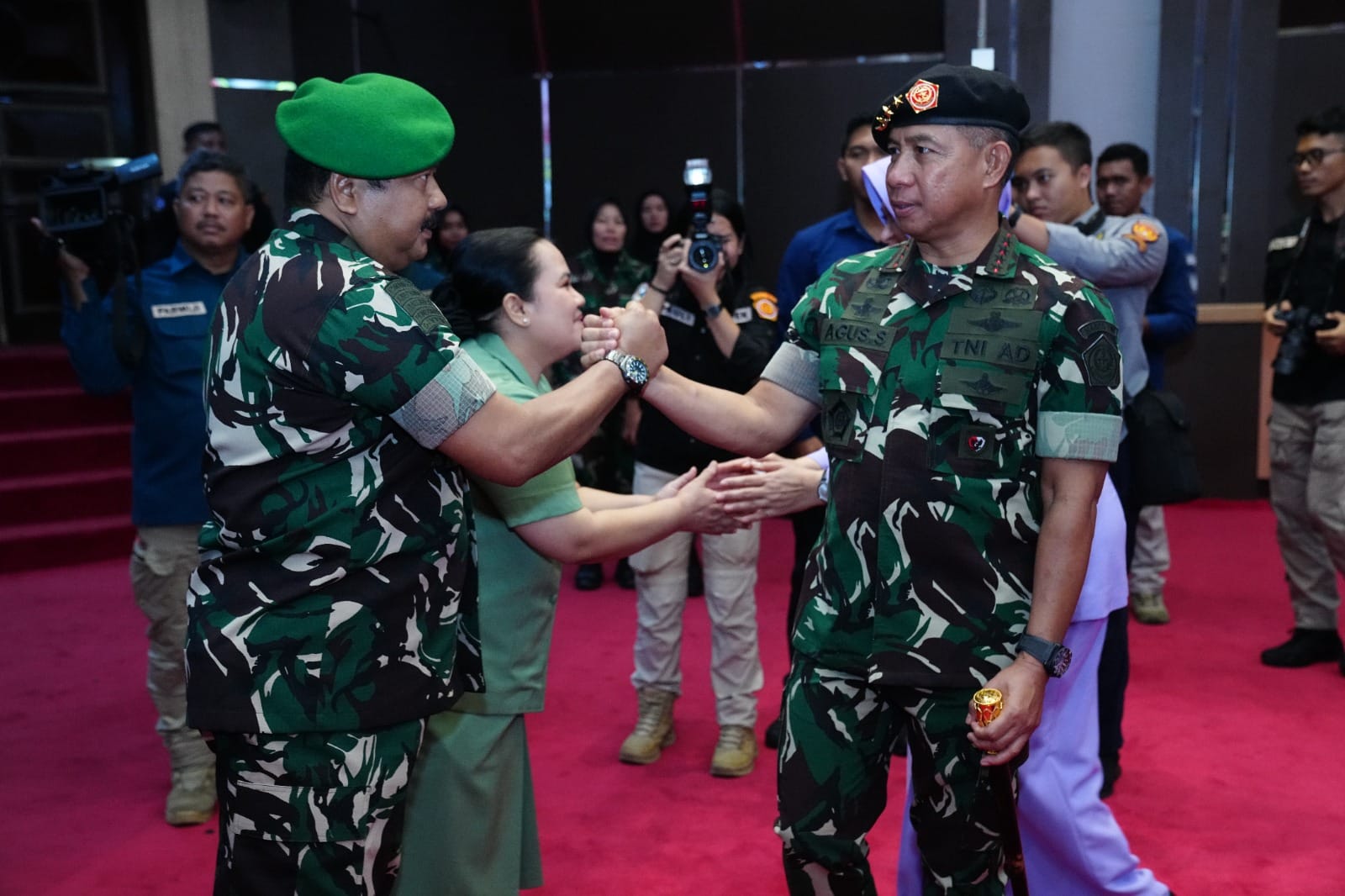 Acara dilanjutkan dengan pemberian ucapan selamat oleh Panglima TNI Jenderal TNI Agus Subiyanto kepada Pati yang melaksanakan kenaikan pangkat, diikuti oleh para tamu undangan. (Tim)