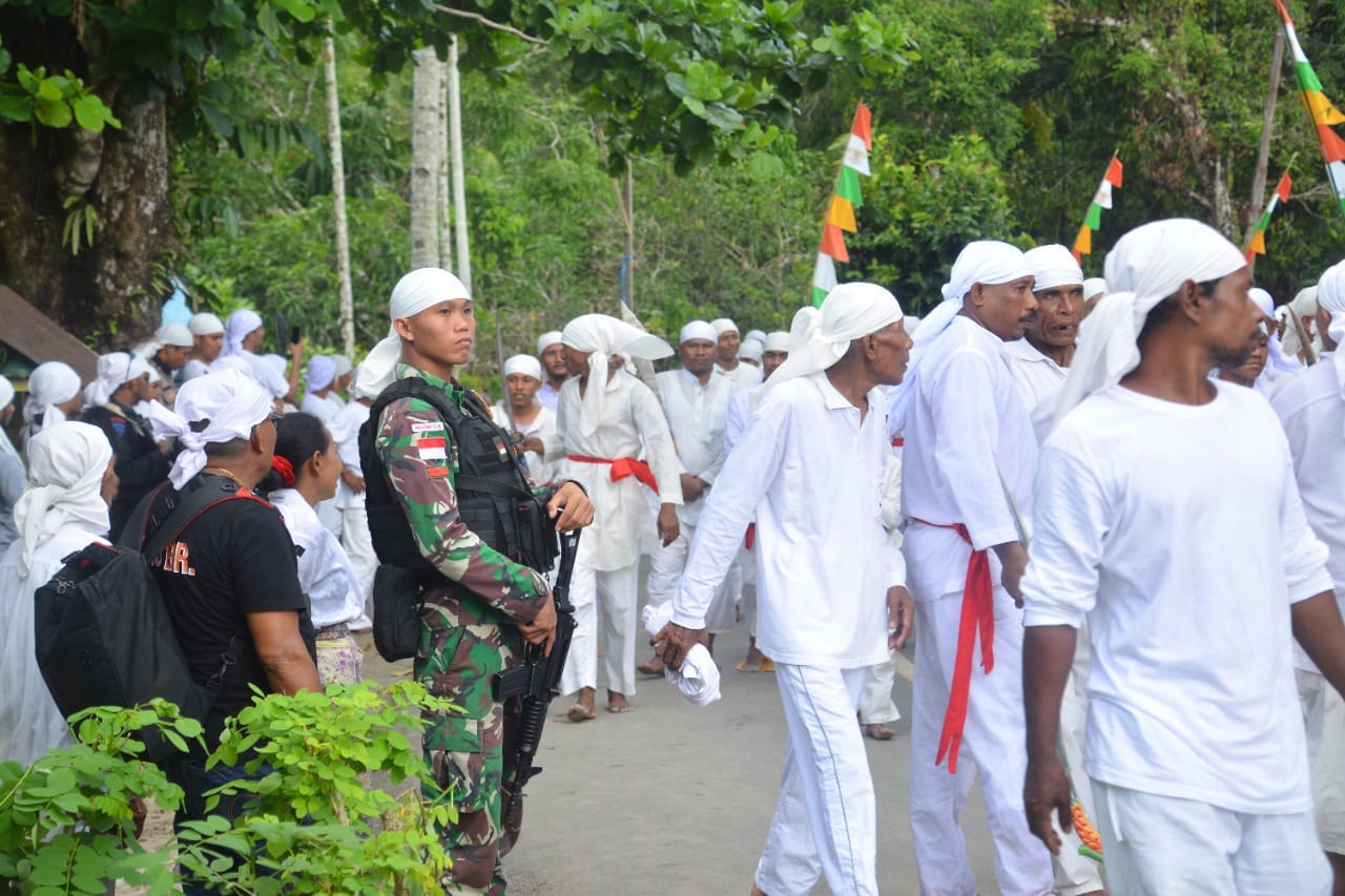 IPNews. Ambon. Pos Ramil Pelauw yang tergabung dalam Satgas Satuan Organik Yonarmed 1 Kostrad turut andil dalam pengamanan kegiatan tradisi Ma’atenu atau yang sering disebut Atraksi Cakalele di Negeri Pelauw, Kecamatan Pulau Haruku, Kabupaten Maluku Tengah.