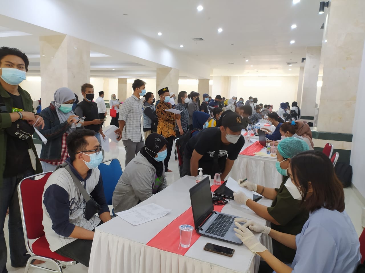 Sebanyak 1300 warga telah menerima dosis Vaksin Covid -19 pertama Jenis sinovac yang digelar PCNU Jakbar bekerjasama PMJ dan Dinas Kesehatan di Masjid Raya KH Hasyim Asy’ari Jalan Daan Mogot Duri Kosambi Jakarta Kamis (8/7/2021).