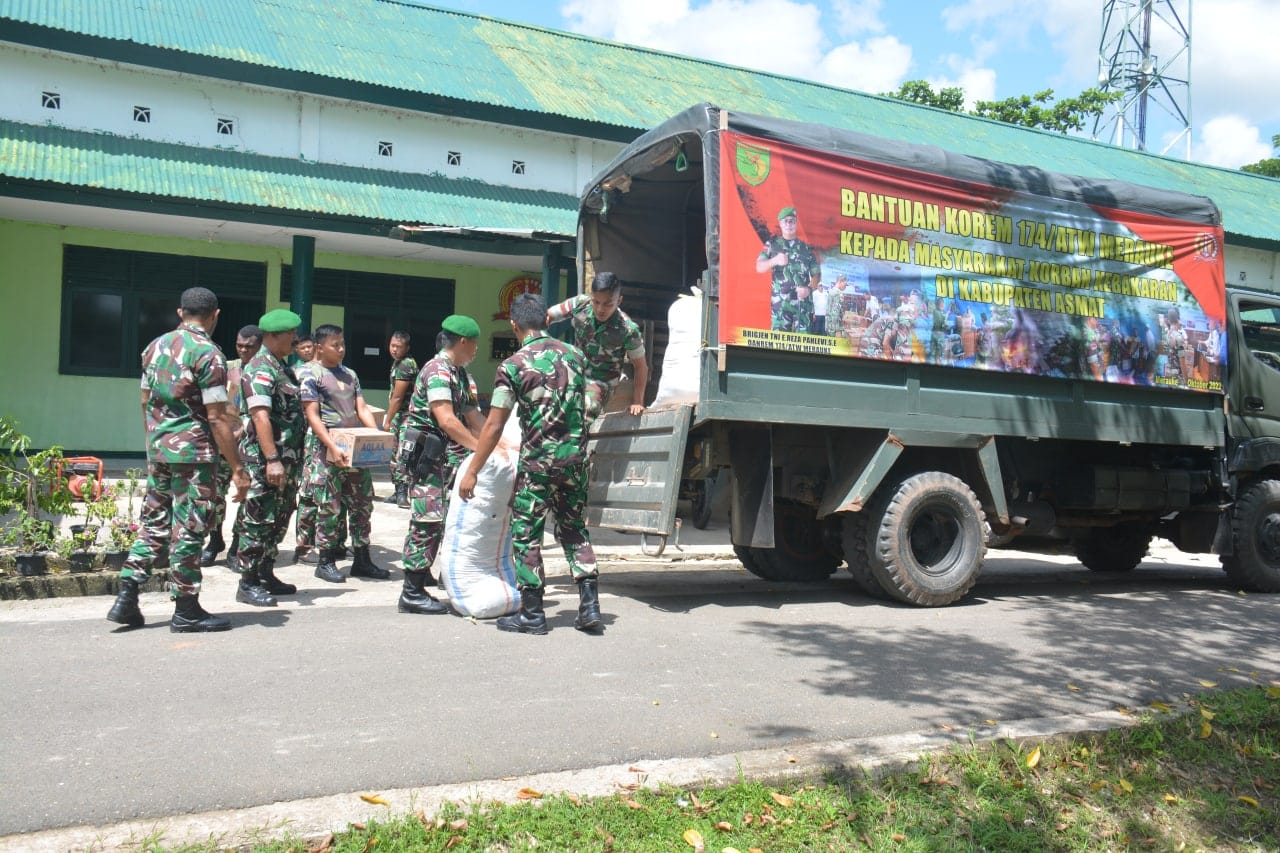 “Korem 174/ATW Merauke memberikan bantuan langsung yang diperuntukkan untuk para korban kebakaran di Pasar Dolog Kabupaten Asmat, berupa sembako, beras, mie instan, air mineral dan pakaian layak pakai,” kata Danrem.
