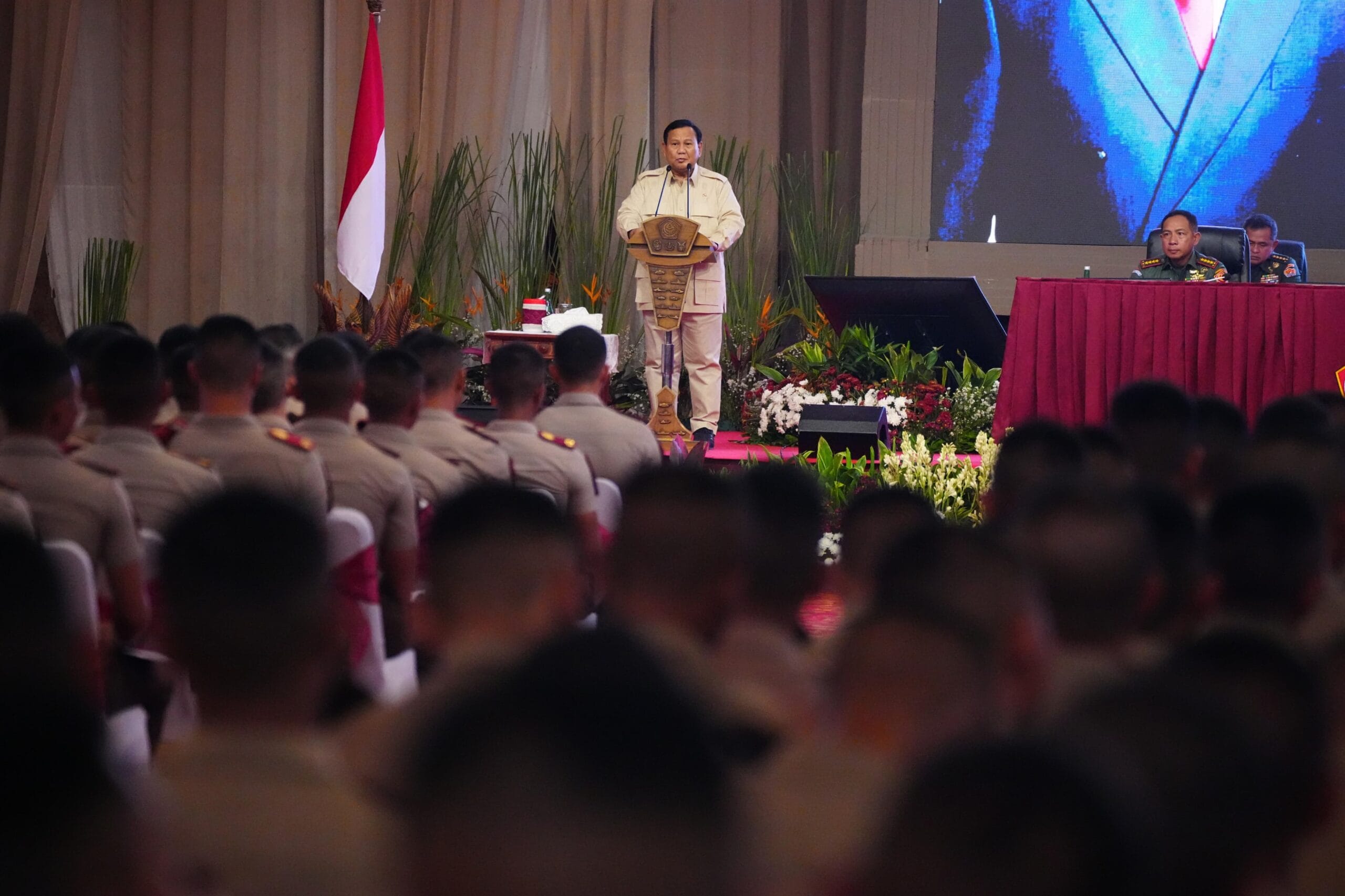 IPNews. Jakarta. Panglima TNI Jenderal TNI Agus Subiyanto dan Kapolri Jenderal Pol Listyo Sigit Prabowo menghadiri acara pembekalan Menteri Pertahanan (Menhan) RI Prabowo Subianto kepada Calon Perwira Remaja (Capaja) TNI-Polri Tahun 2024, bertempat di Gedung Balai Sudirman, Tebet, Jakarta Selatan, Jumat (12/7/2024).