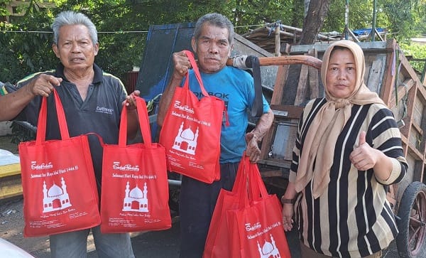 Semoga bermanfaat untuk membantu memenuhi kebutuhan keluarga pasca Lebaran,” ucap Umi Sjarifah saat berbagi paket sembako kepada tukang sampah.