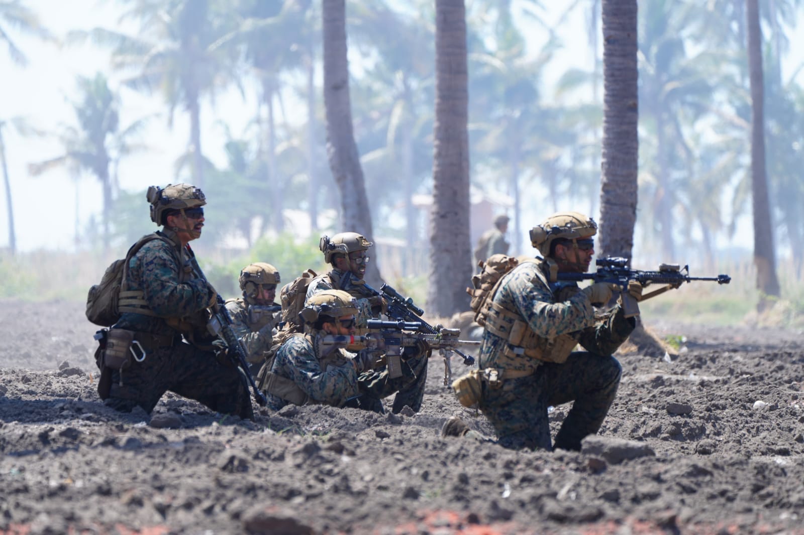Dalam skenario latihan, disimulasikan sebelum pasukan pendarat gabungan multinasional menyerbu pulau yang dikuasai musuh, dilaksanakan infiltrasi