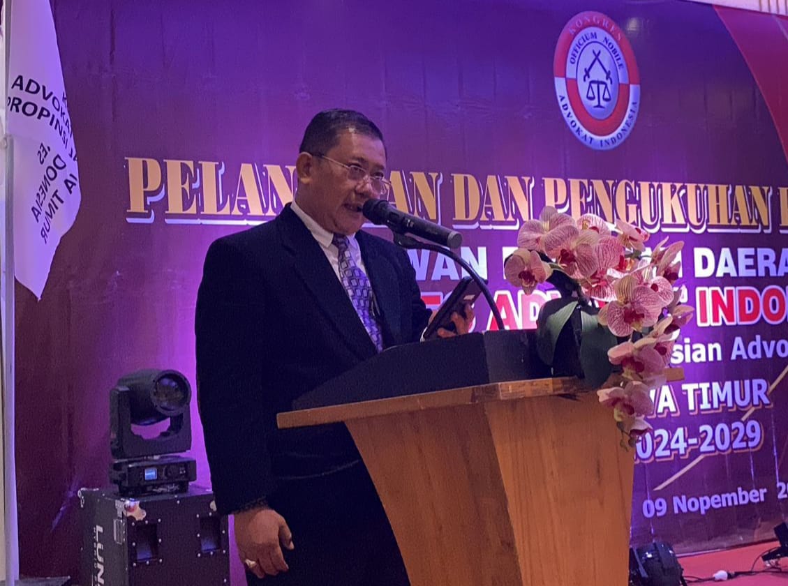 Adv. Arman Suparman SH. MH. MM, selaku Vice Presiden Kongres Advokat Indonesia, memimpin ceremonial Pelantikan dan Pengukuhan Pengurus Dewan Pimpinan Daerah Kongres Advokat Indonesia Provinsi Jawa Timur Masa Bakti 2024-2029.