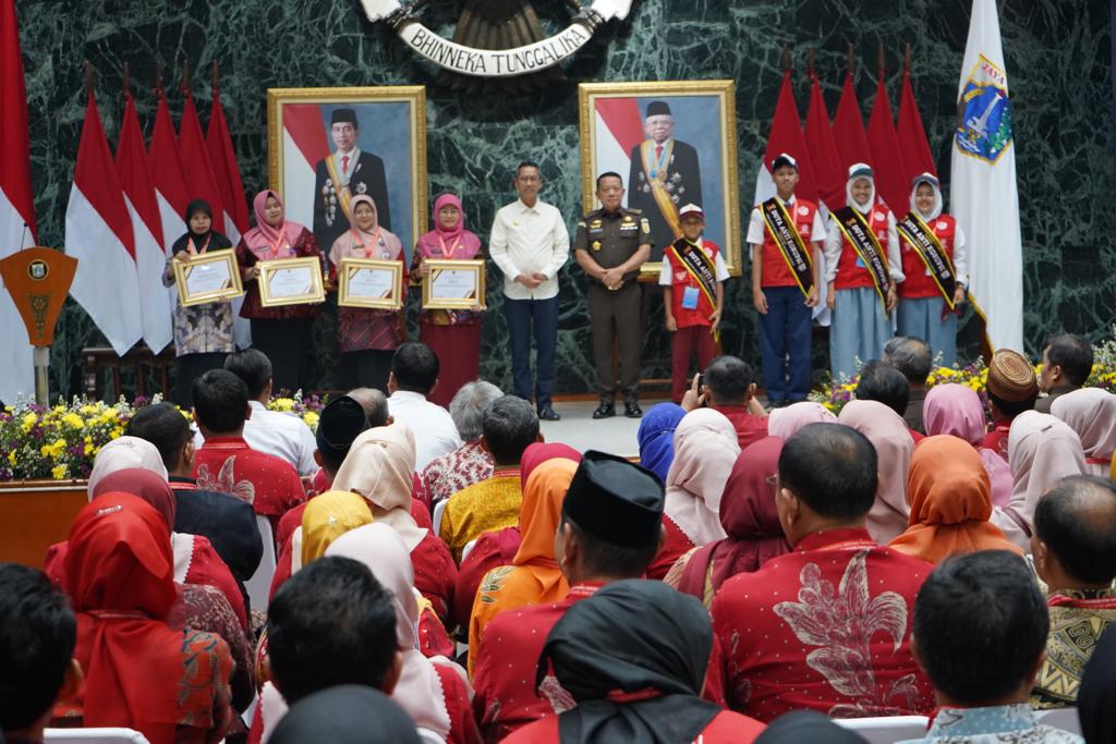 Adapun dalam kegiatan Penyuluhan Hukum tersebut diberikan secara simbolis Piagam Apresiasi atas Tertib Tata Kelola Dana BOS dan BOP dan Penyematan Selempang Duta Anti Korupsi Tingkat SD, SMP, SMA dan SMK Negeri se-DKI Jakarta Tahun 2023 oleh JAM Pidsus dan Pj. Gubernur Provinsi DKI Jakarta kepada Kepala Sekolah serta Pelajar Tingkat SD, SMP, SMA dan SMK. (Wan)