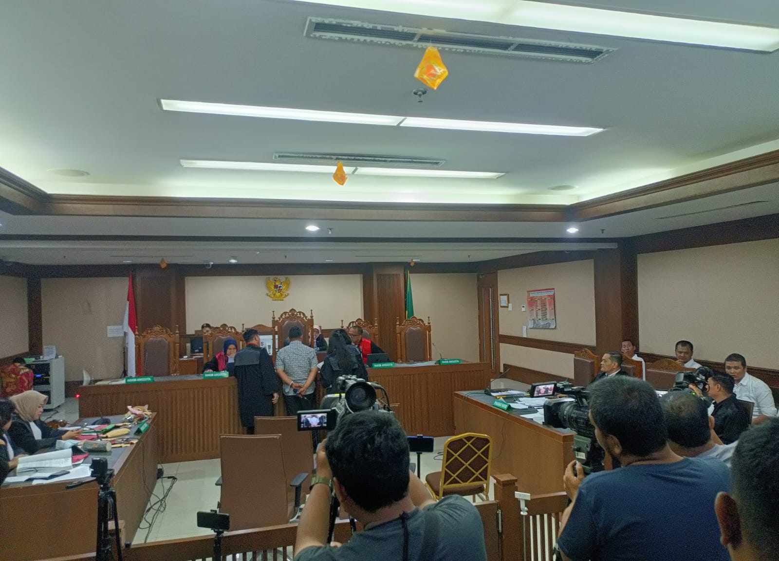 Guna kelancaran jalannya persidangan. Boleh direkam, semua boleh melihat, tapi tidak live. Takutnya masih ada saksi yang lain. Dari penasihat hukum masih ada saksi, penuntut umum masih ada saksi lain yang belum diperiksa Kita menjaga itu,” ujar Hakim Ketua, (Her)