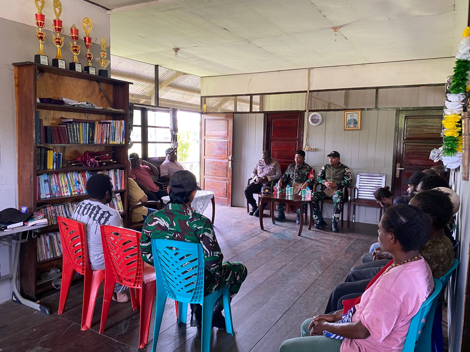 IPNews. Timika. Babinsa Koramil 1710-06/Agimuga Serka Suminar bersama Kapolsek Agimuga melalui kegiatan Binternya hari ini melaksanakan Komsos (Komunikasi sosial) dengan tokoh masyarakat di wilayah binaan di rumah Pastoran Kp. Aramsolki, Distrik Agimuga, Kab. Mimika, Sabtu (03/01/2026).