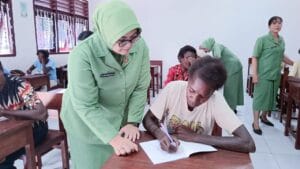Persit KCK Cabang XXXV Galakkan Program Pemberantasan Buta Aksara di Lokasi TMMD