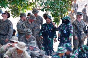 IPNews. Jakarta. Sejumlah personel dari Pasukan TNI dan US, Singapura serta Jepang yang terlibat dalam latihan gabungan bersama Super Garuda Shield (SGS) Tahun 2023, pertajam teknik dan taktik tempur dengan menggelar latihan ambush atau penyergapan bertempat di Bengko Alas, Sopet Jangkar Situbondo Jawa Timur, Sabtu (2/9/2023).