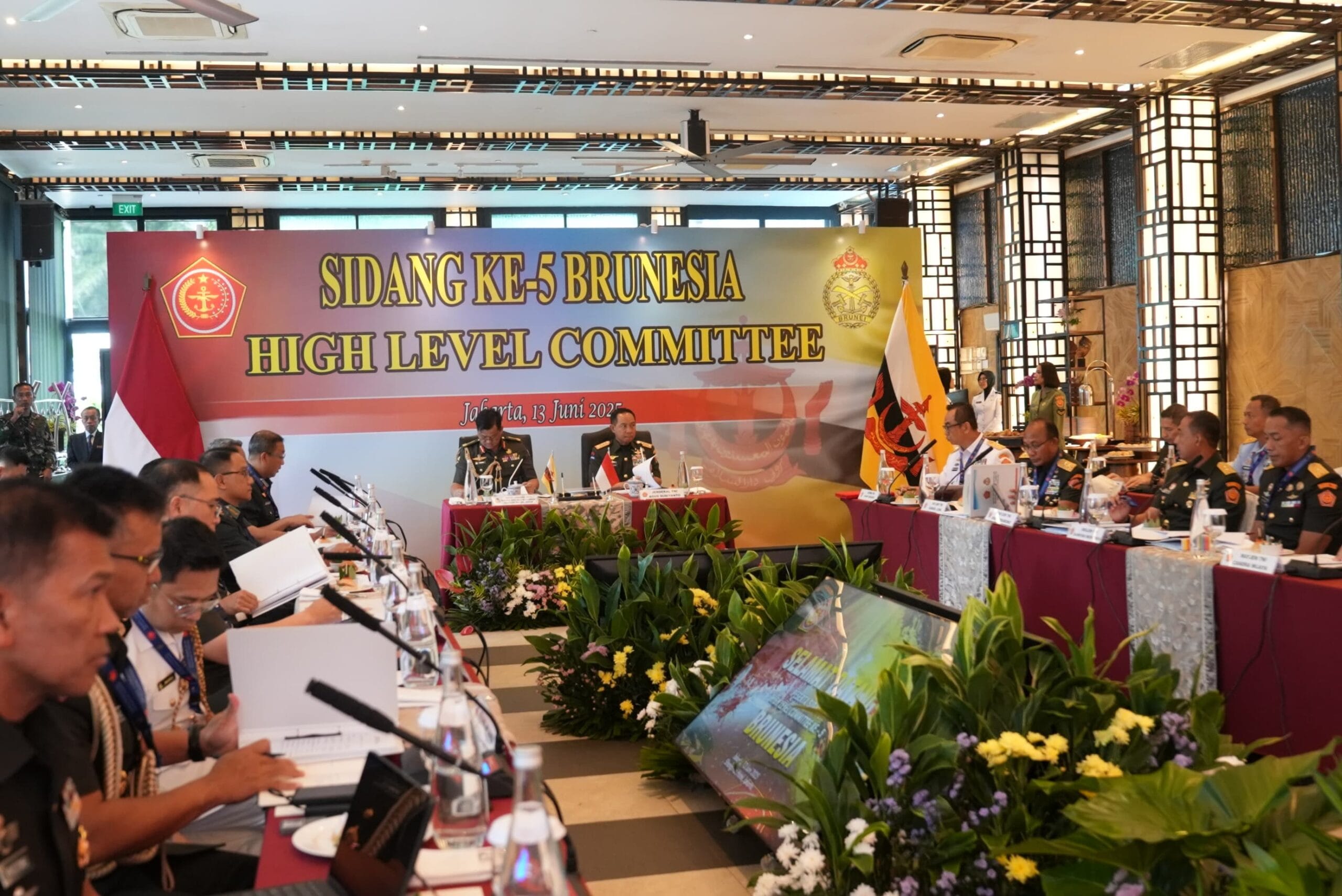 IPNews. Jakarta. Panglima TNI Jenderal TNI Agus Subiyanto memimpin sidang High Level Committee (HLC) Brunei Darussalam – Indonesia (Brunesia) Ke-5 tahun 2025, bertempat di Boardroom 1 Hotel Shangri-La, Jakarta Pusat. Jumat (13/6/2025).