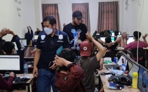 IPNews. Jakarta. Polda Metro Jaya menangkap dan mengamankan satu manager dan 98 Karyawan dalam penggerebekan di kantor pinjaman online ilegal di kawasan Pantai Indah Kapuk (PIK) 2 Penjaringan Jakarta Utara Rabu (26/1/22).