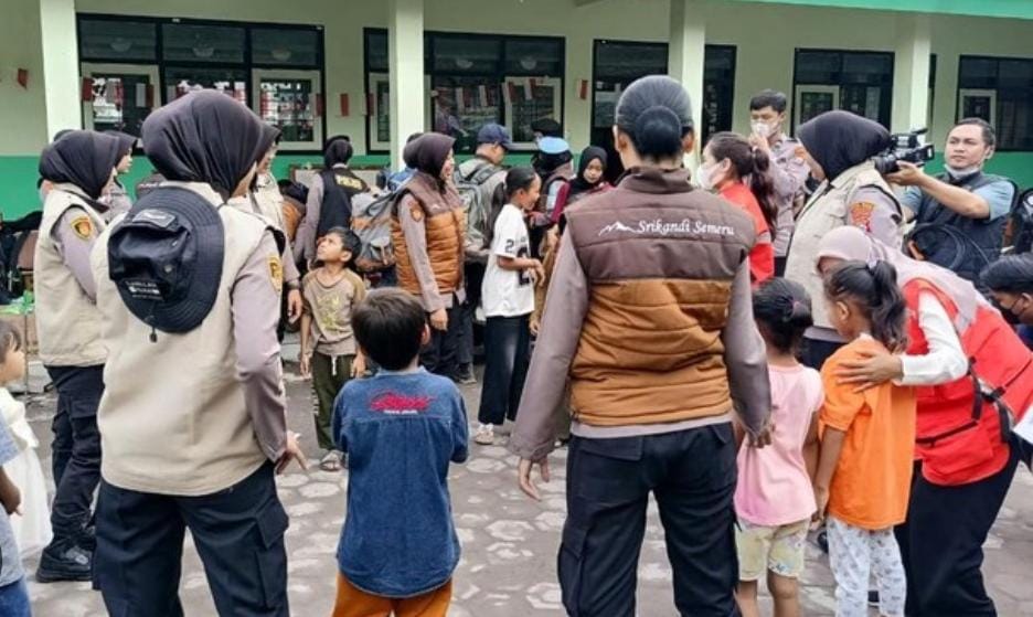 Kegiatan itu digelar di lokasi pengungsian SMPN 02 Pronojiwo, Lumajang, Jawa Timur, dengan menerjunkan lersonel Polwan dan anggota Bhayangkari Polres Lumajang.